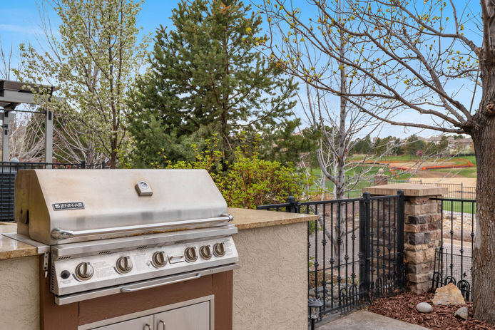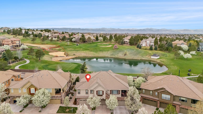 Location, location, location, and then some. A rare find in the highly sought-after Bluffmont Estates in Lone Tree. This home offers luxurious amenities for the mind, body, and soul. The flexible but distinctive layout can transport you to your choice of destination based on your decor, from traditional to modern ambiance. Imagine waking up to a golf course view and a pond in the morning, and relaxing at the end of the day with sunset skies. Very few units with this view at Bluffmont Estates. Walking distance to restaurants, cafes, boutiques, markets, hospital, gyms, trails, and more. Nestled in a quite mountain like neighborhood yet surrounded by amenities, too good to be true? Come and see for yourself. Upon entry, you will be greeted by a 20 ft ceiling and abundant natural light, an open layout that can accommodate an exclusive gathering or a huge celebration, as they saying goes, the kitchen is in the heart of home, and it's true in this home. Adjacent to the kitchen is the family room adorned by a fireplace to set the mode. The dining room, also adjacent to the kitchen, is complimented by a panoramic window for an unobstructed view of the golf course and pond, perfect for outdoor entertaining. The back patio spans the length of the unit with built-in gas grill and has direct view of the golf course as well. The master bedroom is located on the main floor with an en suite 5 piece bathroom and walk-in closet. Upstairs you will be walking on premium hardwood floors throughout, a secondary bedroom, a full bathroom, an office, and a loft completes the interior. The view from above gives you a feeling of grandeur as the owner. Additional features includes custom curtains, textured walls, upgraded cabinetries, fixtures, glass shower enclosure and many more. HOA includes water, high-speed internet, trash, grounds and exterior maintenance. This is a must-see for single family home seekers as well, no just townhomes. It is the best of both worlds.